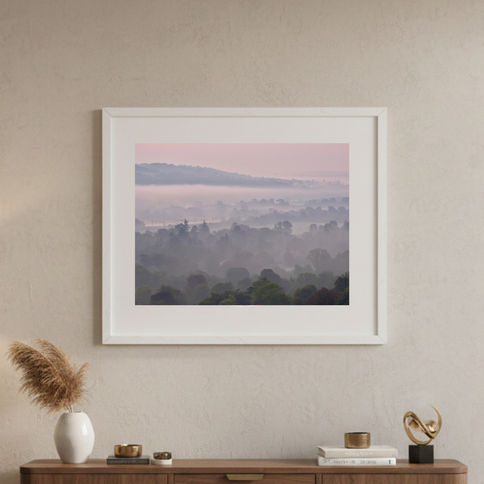 Capture the ethereal beauty of a Foggy sunrise over Goring in Oxfordshire with our exclusive photo print. This stunning photograph encapsulates the serene morning mist, providing a timeless piece of art perfect for your home or office.