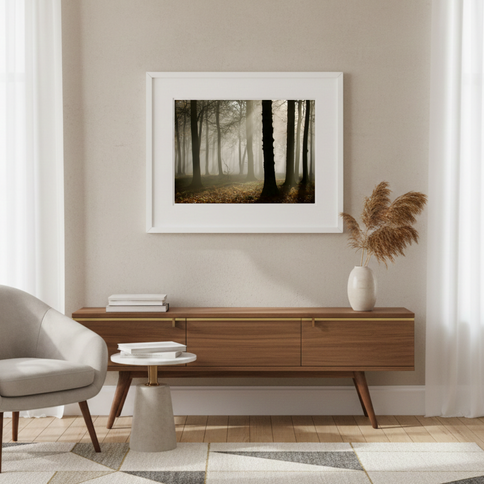 This photo print brings the natural elegance of the woods into your home, offering a touch of atmospheric charm and tranquility to any room. Perfect for living room wall art, bedroom decor, or office spaces, this woodland print is an ideal gift for nature enthusiasts and those who appreciate the calming beauty of forest scenes.