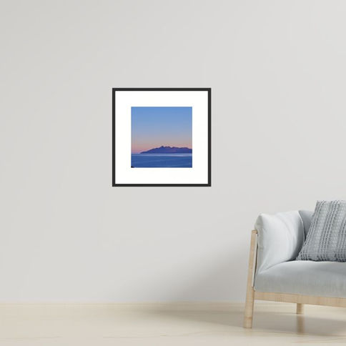 Experience the serene beauty of the Isle of Skye at sunset with this peaceful landscape photography print. Capturing the stunning mountains in the evening sun light, this image brings sense of peace and wonder.