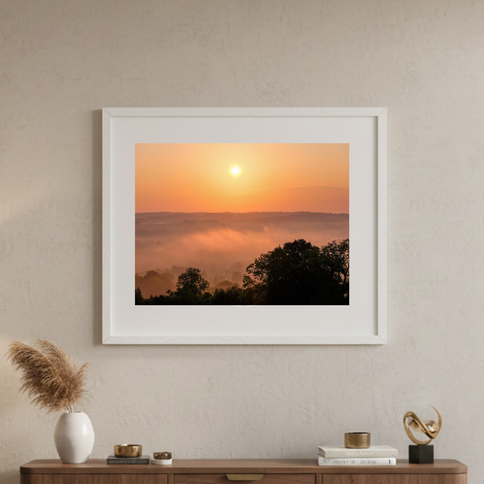 Discover the serene beauty of a misty sunrise with our exclusive photo print of Goring Gap in Oxfordshire, this stunning visual captures the tranquil essence of the early morning, making it an ideal addition to any home or office decor. Experience a piece of Goring Gap's captivating dawn each day.
