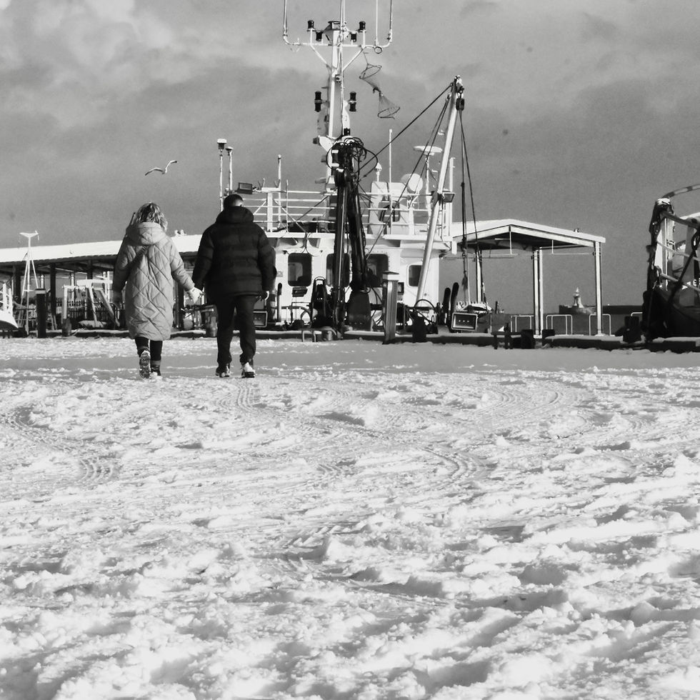 A black and white documentary photo print of North Shields Fish Quay, part of Gaby Zak Documentary Vol.3
